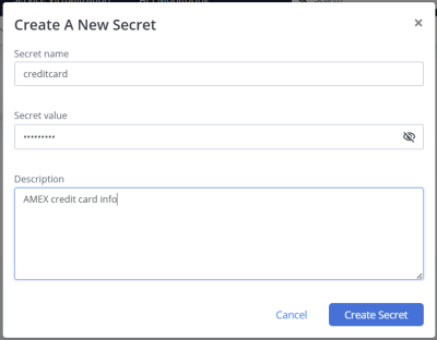 You can create and manage secrets on the Secrets page in your Workspace settings. All workspace members can view all secrets configured in the workspace. All roles except Viewer can create secrets. Once the secret is created, no one can see the value, protecting the sensitive data.