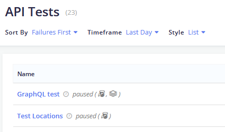 On your Tests list, all paused tests will display a paused indicator, showing that scheduled runs are temporarily disabled.