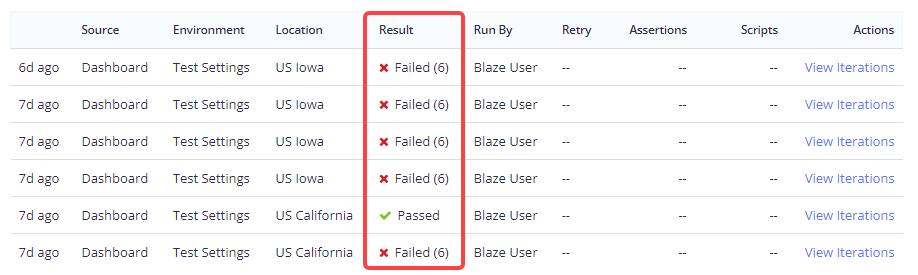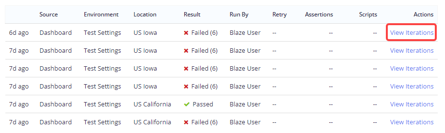Each set of Iterations will show a failed count (if any). This represents the number of individual iterations that failed within that group.