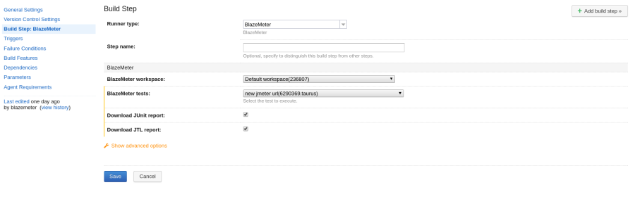 - Configure BlazeMeter’s plugin for TeamCity