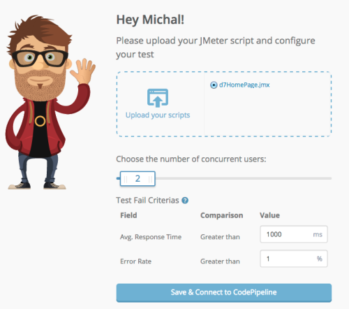 BlazeMeter enables AWS CodePipeline users to test their web applications easily and rapidly, as part of the Continuous Delivery process. From the CodePipeline console, users can easily connect to BlazeMeter and run tests.