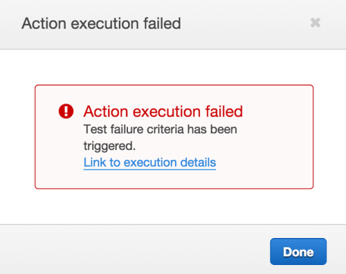 CodePipeline works only if a certain 'Test action' was successful, otherwise the process stops there. If a BlazeMeter test was not successful, the deployment system will immediately shut down as there is no reason to try to deploy a failing build.