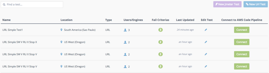 - Connect to AWS Pipeline - Adds this test as an action to your Pipeline.