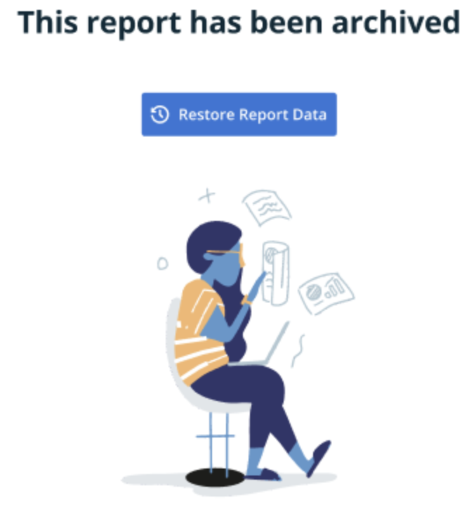 Any team member except "Viewer" can restore an archived report. To restore an archived report, navigate to the report and click Restore Report Data.