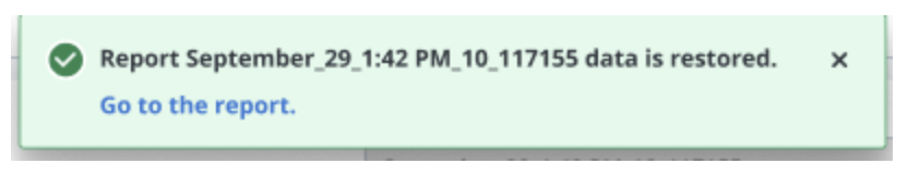 Depending on the size of the report, the restore process may take up to a few minutes. While the restore runs in the background, you can continue to work. If you move to a different page or enter the report while it’s restoring, a popup will notify you once the report data is ready: