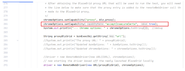For customers using self-signed certificates, BlazeMeter now supports the chromeOptions capability called "acceptInsecureCerts". By adding this property and setting it to 'true', you can enable functionality to accept insecure certificates during testing.