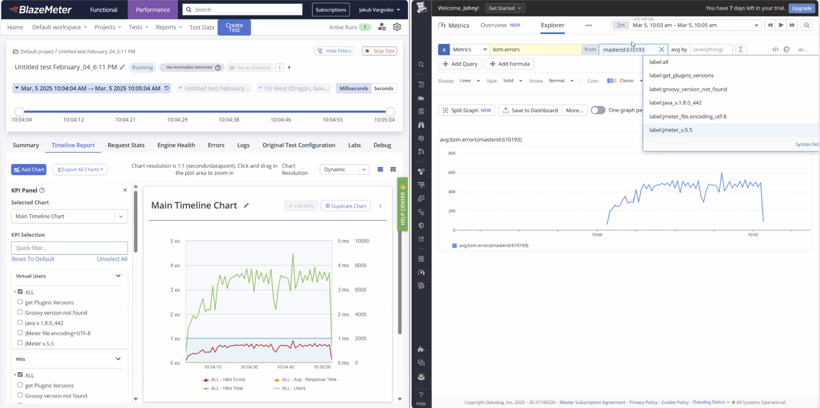 This feature enables users to build highly detailed dashboards in DataDog—on par with BlazeMeter’s in-platform reporting—for more actionable, real-time performance insights.