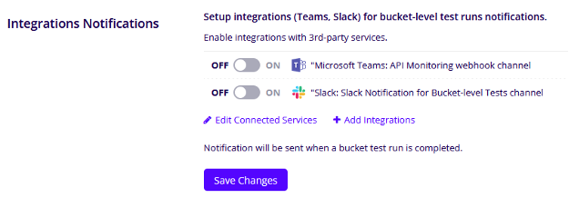 Consolidated test results for Bucket-level runs (email, Teams, Slack, API)